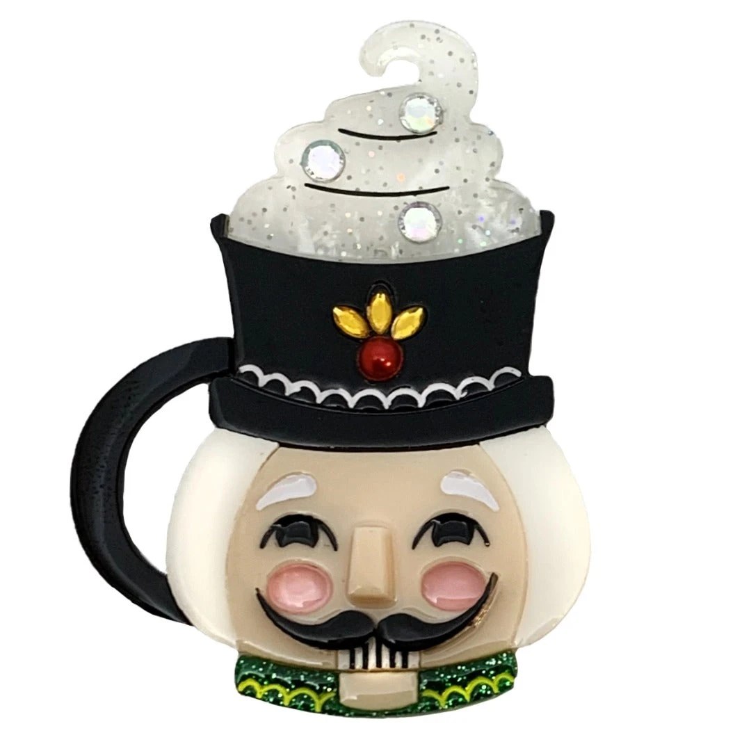 The newest in our Holiday Mug Collection, this little nutcracker is half the size of our Mrs. Claus Holiday Mug Brooch, so they pair perfectly together! *PLEASE expect some color and texture changes to the resin.